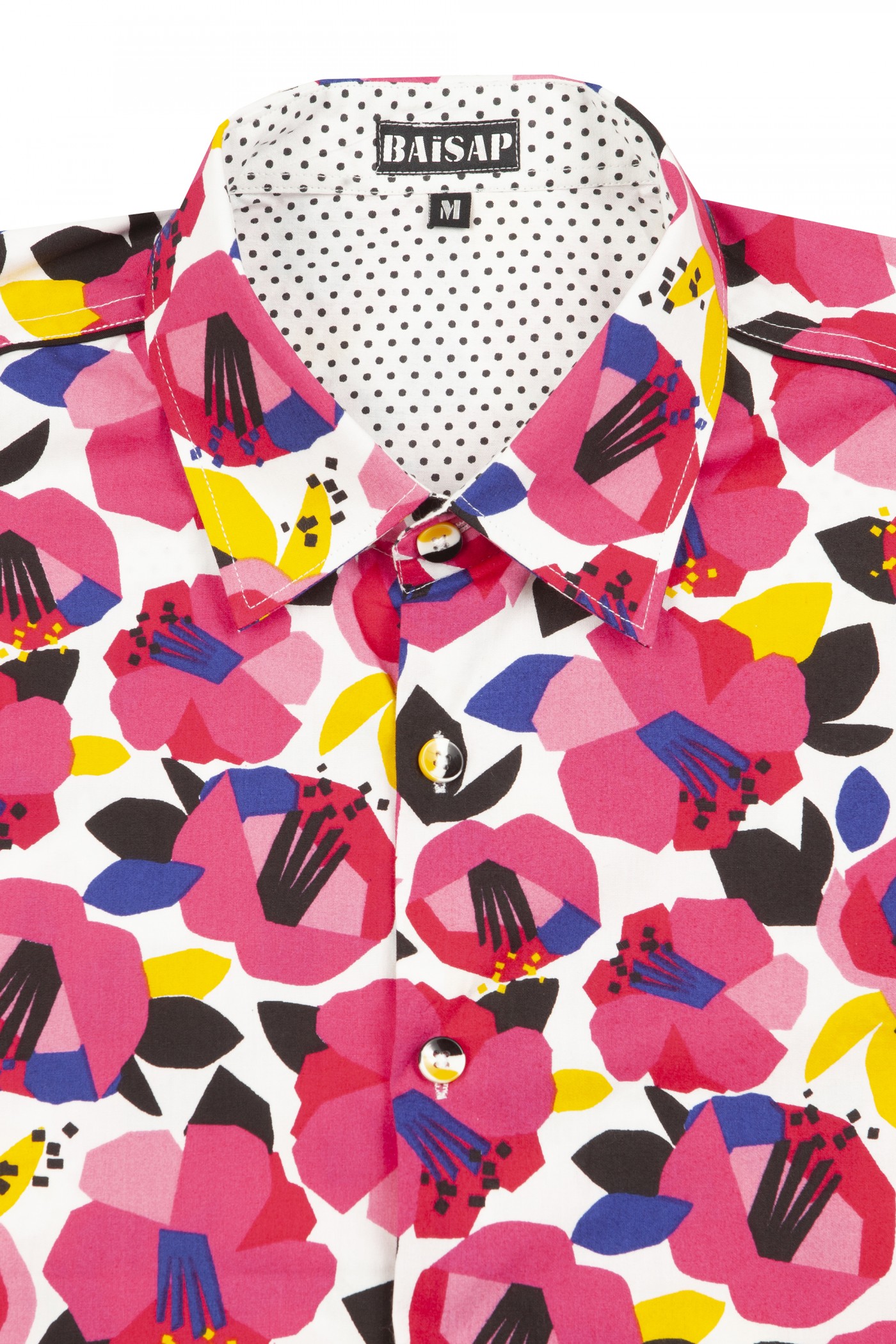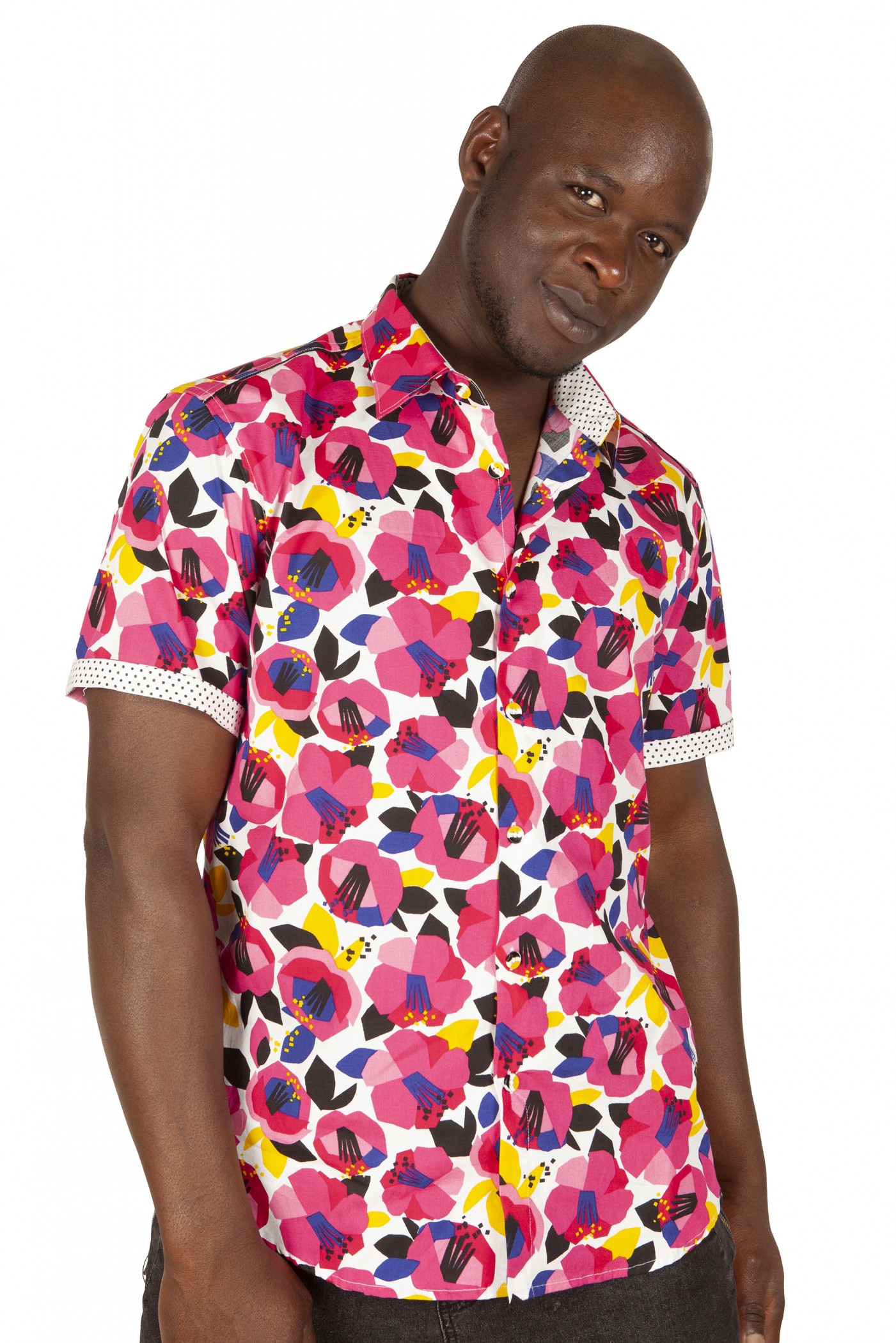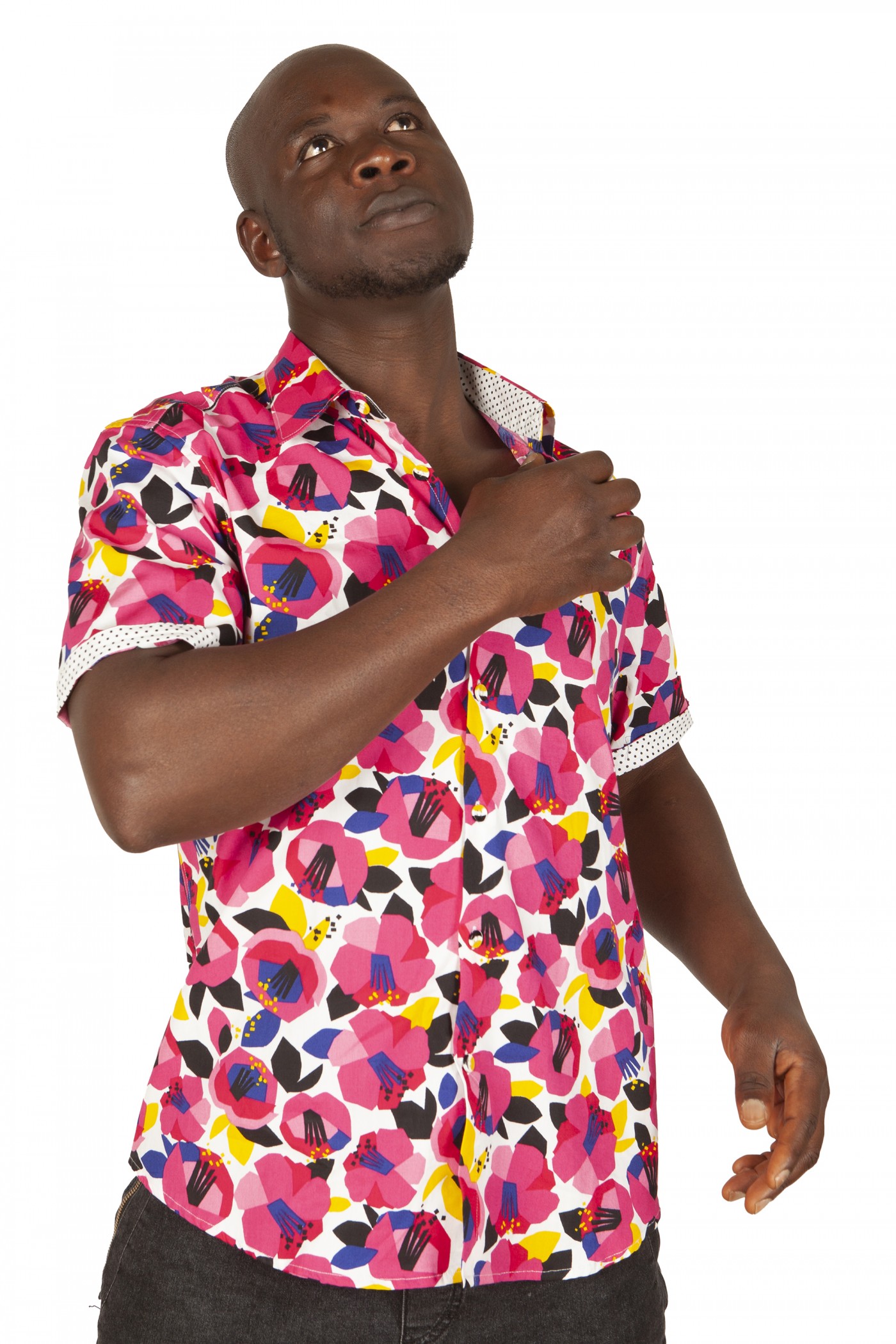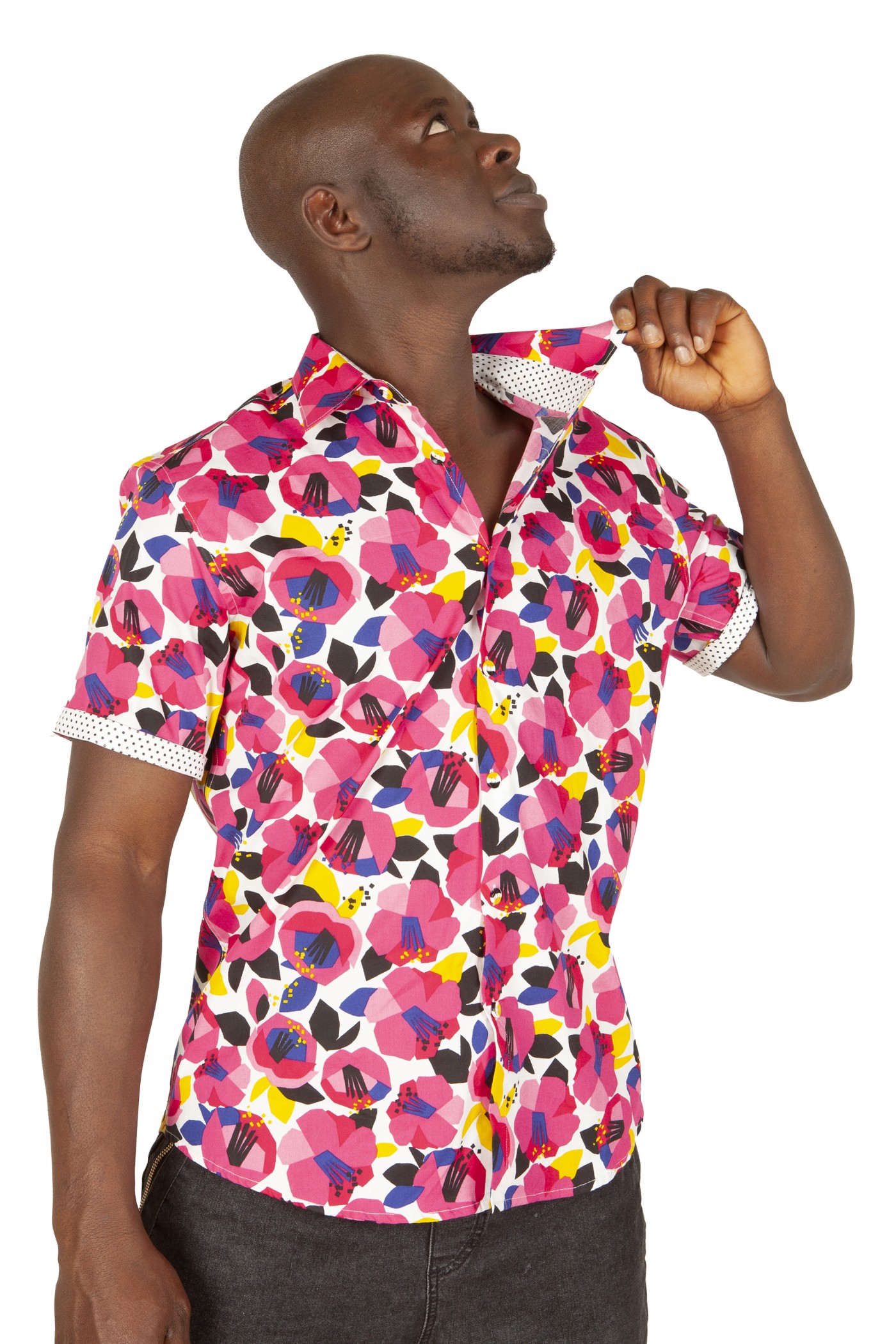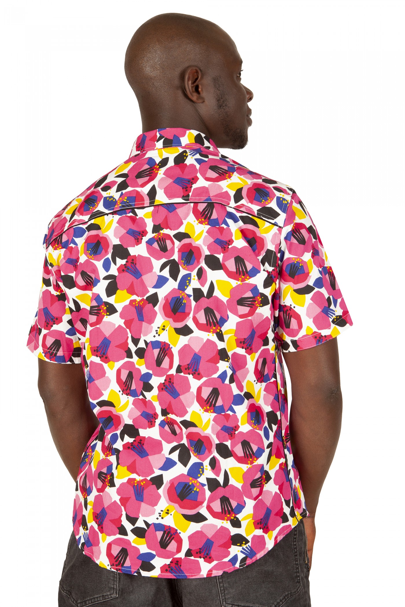- Camisa floreada rosa manga corta