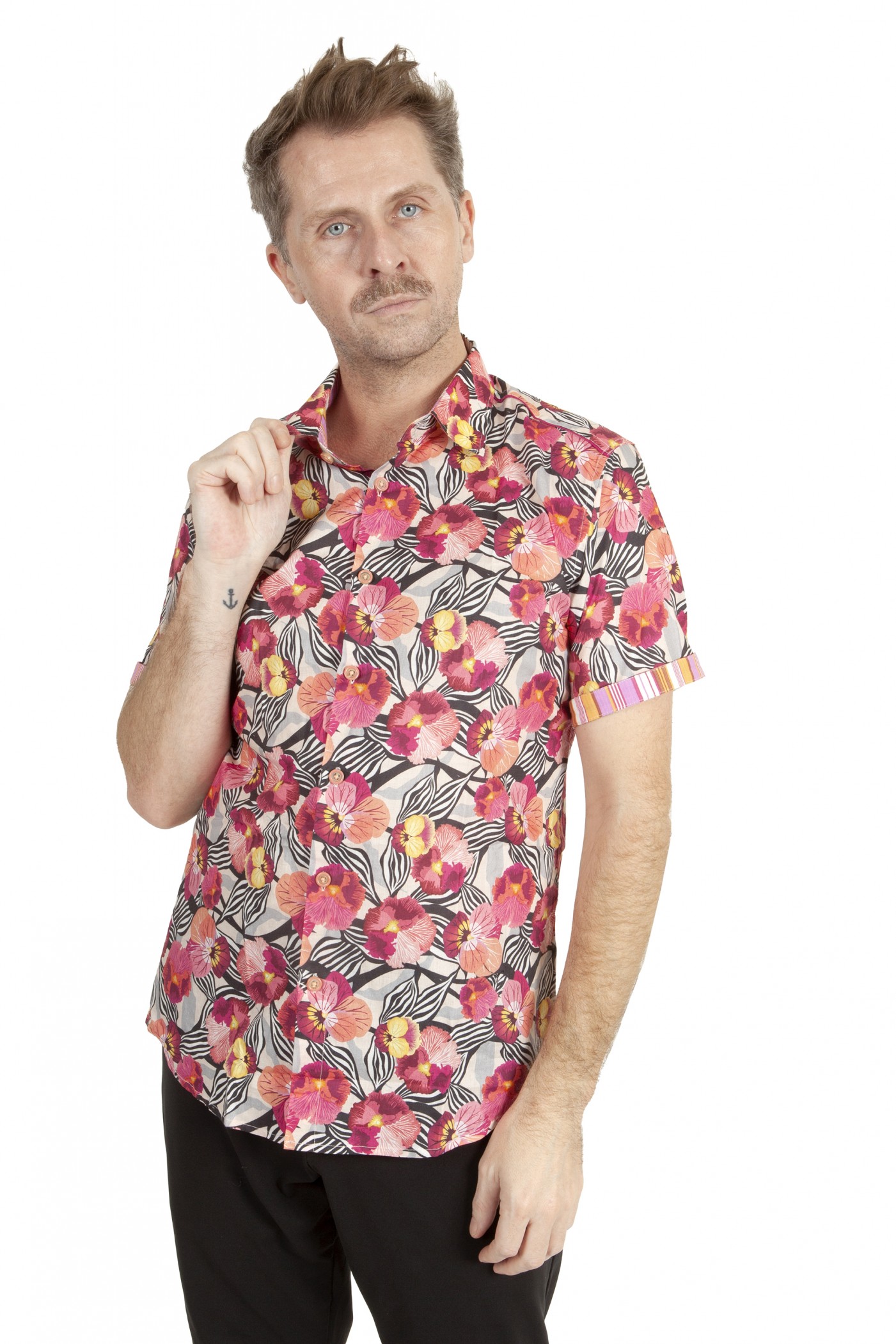- Chemisette homme rose à fleurs